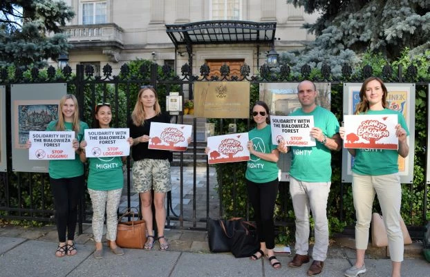 W poniedziałek 26 czerwca odbyła się akcja solidarnościowa przed Polską Ambasadą w Waszyngtonie zorganizowana przez Mighty Earth w odpowiedzi na wielkoskalową wycinkę w Puszczy Białowieskiej na granicy Polski i Białorusi.