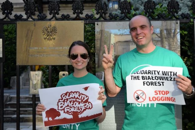"We wanted to let the Polish Government know that the world is watching. When we learned that this unique and ancient forest was on its way to becoming a world heritage site in danger, we decided to organize in front of the Polish Embassy", said Mighty Campaign Director Deborah Lapidus.