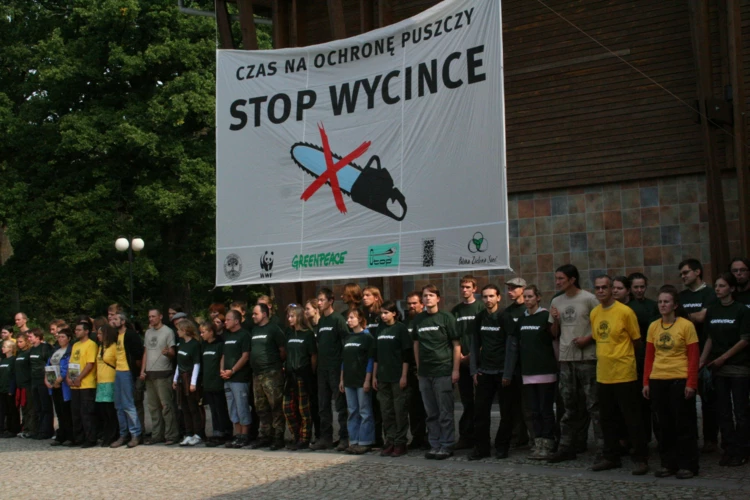Około godz. 12.00 stu aktywistów Greenpeace i Stowarzyszenia Pracownia na rzecz Wszystkich Istot zebrało się przed budynkiem dyrekcji Białowieskiego Parku Narodowego. Nad gmachem parku, unoszony przez balony, zawisł duży transparent z napisem „Czas na ochronę Puszczy. Stop wycince”.